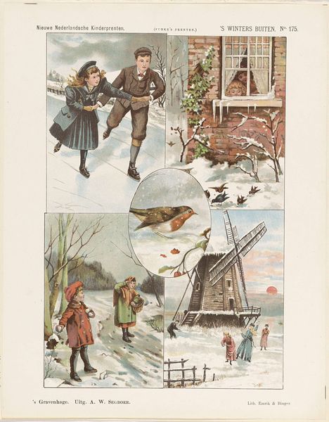 Currier and Ives crafted this print, 'A Spill Out' on the Snow, depicting a lively winter scene, likely using lithography, a popular method for mass-producing images at the time. The composition is dominated by a dynamic arrangement of horse-drawn sleighs, some upright and others in disarray, suggesting a moment of chaotic energy. Observe how the artists use line and form to create a sense of depth and movement. The diagonal lines of the fences and the varying positions of the horses lead our eyes through the scene, creating a layered spatial experience. The crisp, contrasting colors of the figures against the white snow enhance the overall drama, drawing attention to the disarray in the foreground. The cultural codes at play here speak to a society embracing leisure and speed, yet also grappling with the inherent risks. It is a moment frozen in time that we, as viewers, can continually re-interpret, finding new meanings in its structure and details.
