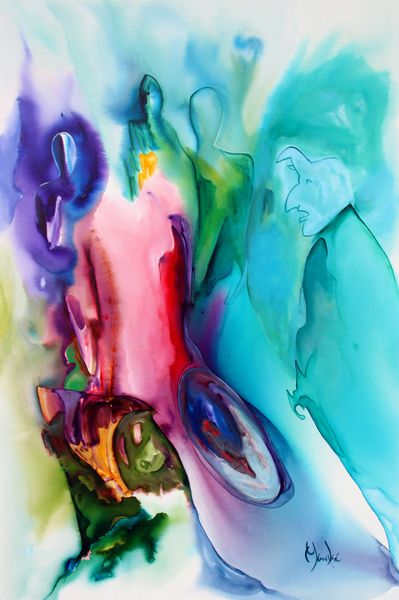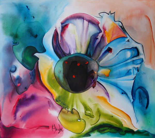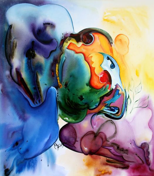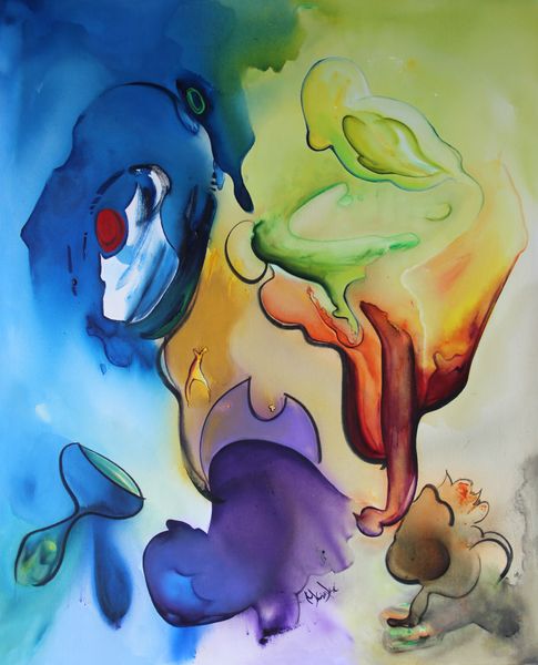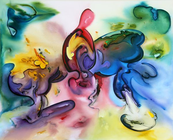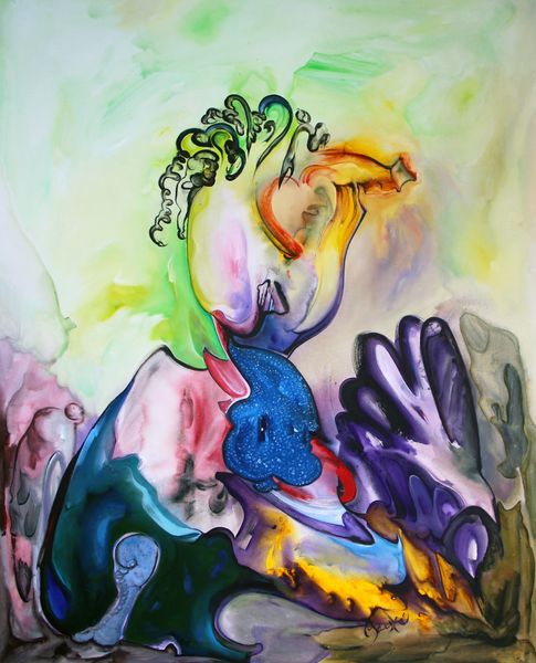 Editor: Here we have Mariojosé Ángeles's "Leaders in White," painted in 2018 using acrylics. It's certainly... striking. The colors are so fluid and melty, almost like a dreamscape. What's your initial reaction to it? How do you interpret this work? Curator: Dreamscape is the perfect word, it's as if these hues swam into consciousness. The painting exudes an unusual power, it’s both bold and tender. For me, abstract expressionism like this is all about unleashing raw emotion – a vibrant dance between chaos and control, what do you think is trying to be portrayed here? Editor: I can see the expression; maybe something about leadership being less about sharp lines and more about this kind of flowing collaboration and movement. It almost feels like faces in conversation. Curator: Ooh, faces in conversation... I love that! Do you think it is about agreement or perhaps conflict? I like the feeling that the "leaders" in white, or rather off-white, are the unheard ideas influencing what is visible on the surface, like the potential contained within a seed. The vulnerability in those soft edges... fascinating, isn't it? Editor: Definitely food for thought, especially how abstract shapes can be so evocative! Curator: Absolutely. It teaches us that leadership can exist beyond clear-cut figures – maybe as potential or background support or shared purpose. We can be those seeds of change ourselves, unseen but influential. Editor: Well, I’ll definitely look at abstract art a bit differently now, considering not just what’s there, but what's simmering beneath! Curator: Precisely. Isn’t that the joy of art, my friend? To perpetually peel back layers.
