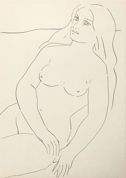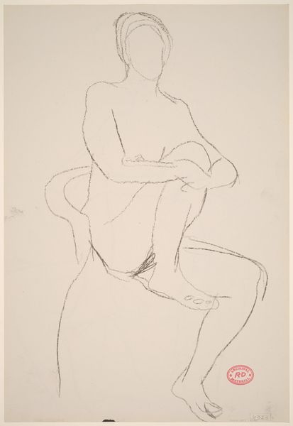 Curator: This is Richard Diebenkorn's "Untitled [seated female nude with legs apart] [verso]", created between 1955 and 1967 using pencil on paper. Editor: My immediate reaction is one of intimacy, though also incompleteness. It feels like a fleeting moment captured, or perhaps a study for something larger. The open posture juxtaposes a vulnerability and strength that invites exploration beyond its raw and gestural materiality. Curator: The artist’s consistent use of the nude in his early figural work often intersected with the shifting landscape of female representation in mid-century America. It begs us to think, were these images simply personal exercises, or part of a larger cultural negotiation? Considering the gaze here, her somewhat averted expression, the drawing allows for a dialogue with contemporary feminist theory, asking about agency and objectification. Editor: Absolutely. But the very nature of a sketch, the lines themselves, speaks to an era grappling with new forms of expression and shifting artistic canons. Diebenkorn emerged from the Bay Area Figurative Movement that itself emerged from post-war Californian painting— the drawing might invite viewers to ponder how institutions, such as the art market or museums, affect artists’ freedom to produce work. The sketch seems removed from concerns with polish and saleability, an experiment, almost. Curator: Precisely. And this, for me, heightens its political nature. During that time, depicting the female form in such an informal way became a site of both personal and artistic negotiation—especially given societal constraints imposed by things like domesticity and conservative notions of sexuality on female identity during the period between the 1950's-1960's. The use of line seems intentional, highlighting contours that create a palpable sense of lived experience—this piece prompts many fascinating queries, about not just aesthetics, but socio-political context. Editor: It underscores how Diebenkorn explored traditional themes through his evolving relationship to representation. It really emphasizes the relationship between figure and medium. So raw, almost aggressive, in its simplicity. Considering his wider artistic trajectory really frames how Diebenkorn interacted with broader artistic movements like Abstract Expressionism. Curator: A fruitful reflection – viewing this drawing allows us not only an encounter with one artist's process but further expands a contemplation upon cultural conversations woven into both our artistic history, and present-day realities concerning identity and artistic agency. Editor: I agree. Ultimately, this drawing offers a small window into a moment of profound transition in American art and society, that keeps evolving with the passing of years.