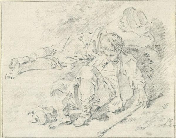 Honoré Daumier's "Rest in the Country" is rendered in watercolor and charcoal, presenting a scene dominated by horizontal lines and muted tones. The composition centres around a reclining figure, whose form echoes the gentle undulations of the landscape. Daumier's use of hatching in charcoal suggests texture and volume, creating a semiotic interplay between rest and labour. The sparse palette evokes a sense of quietude, but also a certain social commentary inherent in Daumier's work. Daumier often used his art to destabilize traditional representations of pastoral life. The figure's rest is not one of leisure but perhaps of exhaustion. This tension between idyll and reality challenges conventional categories of landscape art. The horizontal orientation emphasizes a leveling effect, both physically and socially. The artwork becomes a site where meanings are not fixed, but continuously negotiated.