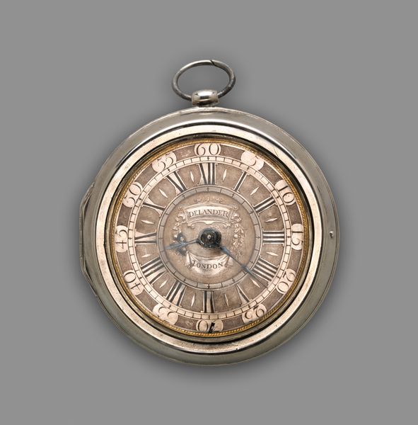 This is a silver watch, two inches in diameter, crafted by Richard Colston, a London clockmaker active in the late 17th and early 18th centuries. The watch's design reflects a society increasingly preoccupied with measuring and managing time. In an era of expanding trade and nascent industrialization, punctuality became a virtue, a sign of diligence and trustworthiness. Timepieces like this weren't merely functional objects; they were symbols of status and social position. Ownership marked one as a person of means, someone who valued efficiency and order. But beyond its immediate context, this watch also embodies broader shifts in European thought. As scientific inquiry gained traction, there was a growing emphasis on empirical observation and mathematical precision. The very act of quantifying time speaks to a desire to impose structure and predictability onto the world. To understand the watch fully, we might consult trade directories, guild records, and probate inventories. These kinds of resources can reveal how such objects functioned within the social and economic networks of their time.