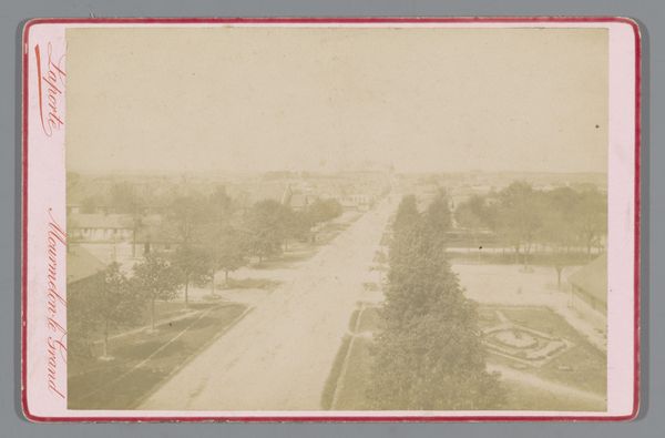 Editor: Here we have a gelatin-silver print from 1891, “Gezicht op de Karl Johans gate in Oslo," or "View of Karl Johans Street in Oslo." I am really drawn to how the blur of the figures creates the feeling of bustling urban life. What can you tell us about this photograph? Curator: This photograph offers a compelling snapshot of urban development and societal shifts occurring in Oslo, or Christiania as it was then known, during the late 19th century. Consider the vantage point: elevated, seemingly detached from the street-level activity. This speaks to a growing middle class, perhaps, who could afford to literally look down on the bustling masses. Editor: That’s an interesting perspective. The elevated view makes it feel somewhat removed, observing rather than participating. Curator: Exactly. And that perspective is itself a product of specific social and technological forces. Photography was becoming more accessible, allowing for the democratization of image-making. But who had the time and resources to experiment with artistic photography? These "cityscapes," as they're often termed, were powerful tools. Editor: Powerful how? Curator: They projected an image of modernity, of progress, but they could also sanitize the view. Do we see poverty here? Unrest? No. The focus is on order and commerce, suggesting a controlled narrative of urban life, shaped and presented to a specific audience. The Grand Hotel on the right signifies an burgeoning tourism industry that catered to the wealthy and served the cultural elite. Editor: I hadn't considered how the absence of certain things could be so telling. This gives me a lot to think about, not just about this image but how photos reflect a specific social and cultural context. Curator: Precisely. It shows how crucial it is to critically examine any artistic expression by looking at what it signifies, not just as a static image but as an active voice in historical dialogues.