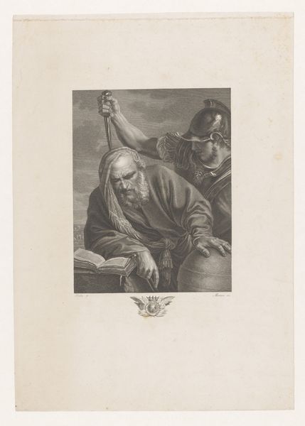 Editor: So this engraving, "Apostel Andreas," attributed to Giovanni Marco Pitteri, from sometime between 1712 and 1786… there’s such a dramatic upward gaze. It feels very Baroque. What do you see in this piece, particularly given its historical context? Curator: Well, its public role as religious imagery is central. Consider the market for prints like these. They weren't necessarily meant for the elite, but to disseminate images of piety and devotion more broadly. The intensity of Andreas’s expression, rendered through the stark contrasts of engraving, participates in the theatricality favored by the Baroque. Editor: The theatricality… it's like he’s performing faith for an audience, even though he's alone in the image. Curator: Exactly! And think about how these images functioned within religious institutions. They reinforced specific interpretations of faith. Why choose Andrew for such prominence? What did he represent to the intended audience? Editor: Probably his steadfastness. The cross hints at his martyrdom. Did the institutions commissioning these prints control their distribution, then? Curator: Almost certainly. Printmaking allowed for the mass production and distribution of ideology. Knowing how institutions used art to shape beliefs really enhances our appreciation of pieces like this, doesn’t it? Editor: Absolutely! It changes my perception, making me consider the print not just as art, but also as a tool. Curator: Precisely! It's a good reminder of art's complex social and political roles throughout history.