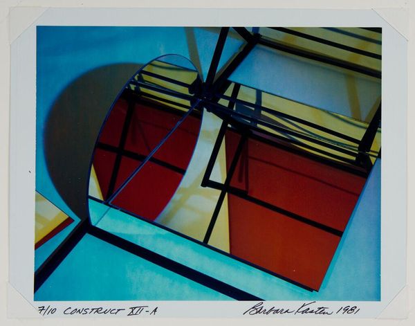 Curator: Barbara Kasten, born in 1936, invites us to examine her photographic work, “Construct III-C”. Editor: Well, it's…intriguing. At first glance, I’m seeing a collision of forms. It gives off a futuristic, yet strangely cold vibe. Curator: Kasten deliberately constructs these scenes, arranging objects and then playing with light and shadow. It’s a manipulation of space. I always feel like I’m looking at something both real and artificial. Editor: You can feel the geometric tension. The severe angles and the reflective surfaces, it's like a deconstructed cityscape where light becomes a tangible building block. Curator: Absolutely. It's an exploration of how we perceive depth and form, pushing the boundaries of photography itself. Editor: It's a compelling perspective on how basic structures can become something quite alien when viewed from a new angle. Curator: I find that the more I study her process, the more the familiar transforms into a source of unexpected wonder.