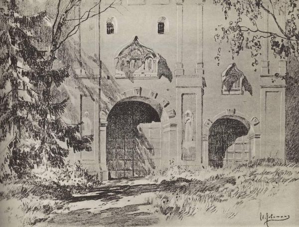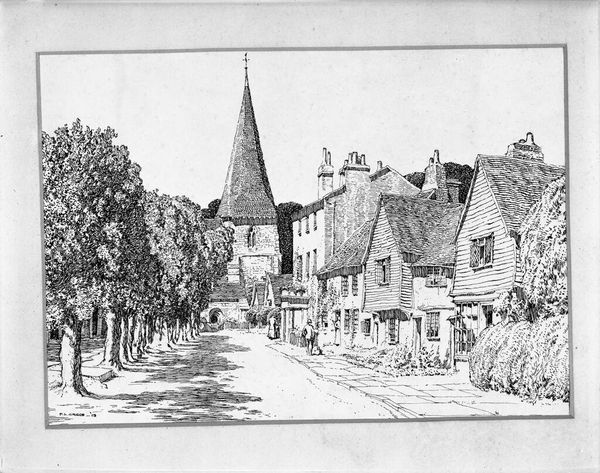 Editor: We're looking at "A Church in Seda," a pen and ink drawing from 1933 by Mstislav Dobuzhinsky. There's a sense of quiet, almost somber dignity in this landscape. The church seems very old, very rooted. What historical contexts illuminate this artwork for you? Curator: Well, the date itself, 1933, is significant. This was a period of immense upheaval and anxiety across Europe. Dobuzhinsky, a Russian artist who had emigrated, was observing the landscape with a perspective shaped by loss and displacement. Editor: Loss and displacement? How does that inform our understanding? Curator: Look at the way he renders the church, isolated and almost vulnerable despite its imposing structure. This isn't just a picture of a church; it's an image freighted with meaning about cultural continuity and the fragility of tradition in a rapidly changing world. The use of pen and ink – a relatively accessible and portable medium – might reflect the artist’s own transient situation, creating art under socio-political constraints. Editor: So, the medium itself contributes to the historical narrative? Curator: Precisely. Think about the role of religious institutions in preserving national identity, particularly during periods of political instability. Does the way Dobuzhinsky depict it feel celebratory, or something more muted? Editor: I see what you mean. It’s not glorifying; it's more like a quiet, respectful acknowledgement. Maybe even a bit melancholic. Curator: The power of the image resides in this careful balance. Dobuzhinsky reminds us that even seemingly timeless structures are embedded in specific historical moments and power structures, impacting both their creation and reception. Editor: I never considered how much the socio-political climate influences something like a landscape drawing. That's incredibly insightful. Curator: Art always exists in dialogue with the world around it. Understanding that dialogue is key to appreciating its full significance.