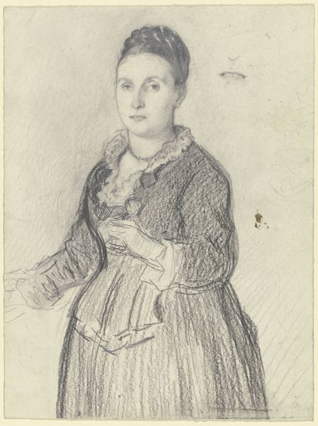 Julius Hamel made this pencil drawing, “Sitting Girl,” sometime in the 19th century. The drawing gives us a glimpse into the artist's world and the lives of women during that period. There’s a sense of quiet contemplation in this image. The young woman’s posture, with her head resting on her hand, suggests a moment of introspection. It invites us to consider the interior lives of women in a time when their roles were often narrowly defined by societal expectations. Hamel, by capturing this moment, acknowledges a depth beyond the surface, hinting at the complexities of female identity. The delicate lines and soft shading enhance the emotional vulnerability of the figure. It’s as if Hamel is inviting us to empathize with the sitter, prompting us to reflect on our own moments of quiet reflection and how they shape our understanding of ourselves and the world around us.