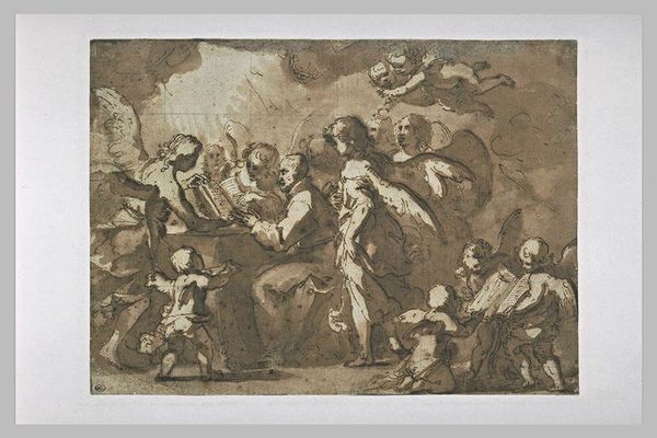 Antonio Zannoni created this wash drawing, titled “Worship of the Golden Calf”, in the 19th century. The eye is immediately drawn to a dynamic assembly of figures set against a lightly washed background, dominated by sinuous lines and a monochromatic palette. The composition pulses with movement, from the central idol to the scattered poses of the adoring figures. Zannoni uses the narrative to investigate the role of idolatry and societal breakdown. The classical figures, rendered with an almost frantic energy, reflect a departure from traditional, structured compositions. Instead, Zannoni embraces a more fragmented, dynamic approach. The drawing may challenge fixed meanings, prompting us to question the nature of faith, authority, and the consequences of societal desire. Look closely at the drawing’s unfinished quality and the way the ink washes bleed into the paper. This functions not just aesthetically, but also encourages ongoing interpretation and discourse.
