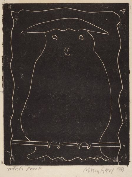 Curator: What a striking print. This is “Twee sneeuwhazen,” or “Two Snow Hares,” a woodcut made in 1911 by Samuel Jessurun de Mesquita, currently held at the Rijksmuseum. Editor: Immediately, I notice the intimate quality of this image. The way the two hares are positioned one above the other creates a sense of closeness, a quiet communion almost hidden away by the framing trees. Curator: Mesquita’s prints, particularly his animal studies, were quite innovative for the time. He was operating in a period where artists were really questioning traditional representation. His embrace of woodcut, a traditionally folk medium, was quite radical in the fine art circles of the early 20th century. Editor: Absolutely. And I see in this woodcut symbolism related to vulnerability and watchfulness. Hares, often associated with fertility and the moon, gain a different resonance when seen pressed together in this stark, linear landscape. There is both fear and safety implied, two sides of the same symbolic coin. The vertical strokes filling the backdrop act almost like prison bars. Curator: An interesting read! You know, Mesquita taught M.C. Escher, and you can see that influence already germinating here. It's more than just technique. Mesquita's work served as a space for experiment. This one really embodies the Dutch Art Nouveau movement, with its blend of nature and stylized design. How the art scene supported such departures says a lot about its tolerance at that time. Editor: I agree. There’s also something primal about the starkness, the high contrast. The black and white imagery removes all color distraction to emphasize shape. By pairing that visual impact with this subject matter, viewers can dive right into their instinctive association with nature. They can respond from feeling, which I think still speaks to modern sensibilities. Curator: I hadn't considered that, and that is fascinating. Editor: Ultimately, this seemingly simple image encapsulates complex ideas. I am particularly inspired to understand art historical objects that feel accessible in any context. Curator: Precisely! It bridges that historical gap through recognizable, almost iconic imagery, enabling contemporary engagement with a different historical context.