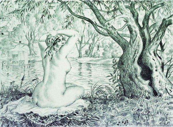 Paul Ranson, who was part of the Nabis group of artists, created this untitled image with pastels. A nude female figure stands in a forest clearing, but this is no ordinary nude. The woman’s gaze is averted, and her body is unidealized, almost awkward, disrupting the traditional male gaze. The Nabi artists were deeply influenced by occult and Symbolist ideas, seeking to express spiritual and emotional states through their art. Ranson himself was very interested in esoteric and mystical themes. The Symbolists, with their focus on dreams and inner experience, really opened a door to new ways of representing the body and space, and new ideas about subjectivity. The figure in this work reflects a move toward intimate and personal narratives, challenging the conventional academic nudes so prevalent at that time. Through its use of color and form, the forest becomes a space of psychological exploration and symbolic representation.
