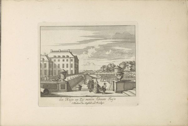 Editor: So, this is "Stadsgezicht met Diaconieweeshuis te Amsterdam" – quite a mouthful! – from 1782, by Cornelis Brouwer. It's an engraving, and it’s got this incredibly peaceful, almost nostalgic feeling to it. I'm curious, what captures your attention when you look at this piece? Curator: Oh, that quiet stillness is absolutely the magic of it, isn't it? It's like catching a glimpse of a memory. For me, it's the sky – those monumental clouds towering over the Diaconieweeshuis, or the orphanage. Brouwer isn't just documenting a building; he’s creating atmosphere, a sense of place suspended in time. Does it feel "real" to you? Editor: In a way, yes! Though, it almost feels too perfect, too composed to be real. Curator: Exactly! It’s realism with a wink. Notice the careful lines, the balance of light and shadow. It reminds me a little bit of Dutch Golden Age paintings but rendered with the precision of an engraver's hand. Perhaps he wanted to show the Diaconieweeshuis as a safe heaven. Does that feel to be the intention when looking at the building? Editor: That’s such a good point. I didn't initially pick up on it, but knowing the orphanage is the focal point makes it seem warmer. It has given me a new perspective. Thanks for that! Curator: And thank you for opening my eyes to the quiet drama playing out along the canals! The more you look, the more you find, right?