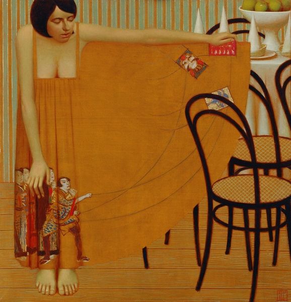 Felice Casorati painted “Girl on a red carpet”, sometime in the early 20th century, using oil paint. You know, the way Casorati handles paint is so intriguing; there’s a stillness and clarity to his forms that feels almost like he's carving space, rather than just filling it. Look at the carpet, that field of red. It's like a stage set, isn't it? The textures are so flat, yet layered with detail, like a dream trying to hold onto its form. And then there's the girl, her dark dress almost blending into the shadows, with her pale face emerging into the light, it's the kind of contrast that pulls you in, asking you to question what’s real and what’s imagined. The doll, the kitten, the books scattered, all are actors in this drama of girlhood. It's like a tableau vivant, frozen in a moment of contemplation. This image almost reminds me of Balthus, who was playing with similar themes of adolescence and alienation, but with a cooler, more detached gaze. With Casorati, you feel there’s a warmth, a kind of tenderness, despite the underlying sense of unease.