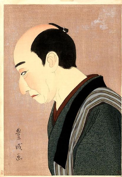Natori Shunsen made this print, Kataoka Nizaemon as Honzo, with ink and color on paper. It's so striking how the face is rendered almost like a mask, with very precise outlines, while the hair has a more organic, almost scratchy feel to it, like the process of drawing is right there on the surface. I keep thinking about the way the black ink pools in the clothing. The dark tones give the piece a real graphic punch, and the texture of the cloth is almost velvety. Then you see those little details, like the red dot on the handle, which creates this surprising moment of contrast. It reminds me a bit of Hiroshige, but with a more modern feel. Ultimately, the piece exists somewhere between representation and abstraction, between surface and depth, and I think that’s where the magic happens.