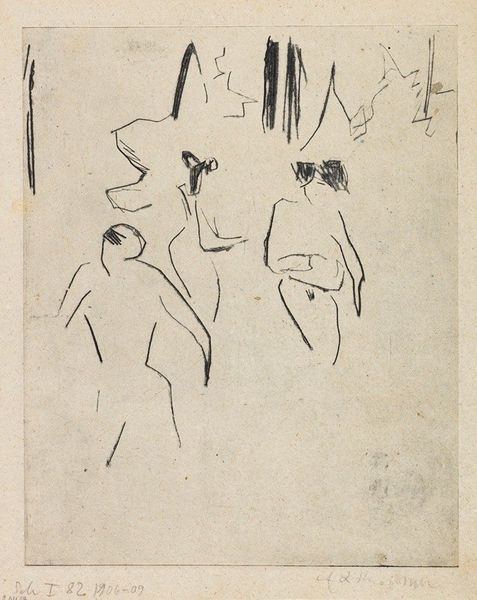 Curator: This is John Singer Sargent’s sketch, "Three Figures with a Parasol in a Boat," residing here at the Harvard Art Museums. Editor: I'm struck by how this loose drawing evokes such a bright, almost oppressive, midday sun. The parasol dominates the scene. Curator: Indeed, Sargent's rapid marks and compositional choices place emphasis on the making. This is a study, a moment in his artistic labor. The material limitations of graphite on paper shape our understanding. Editor: Yet the parasol, historically a symbol of status and protection, casts a long shadow, both literally and figuratively. The figures seem almost trapped beneath its weight. Curator: I see the parasol more as a tool, providing shade for leisure, and a reflection of the social stratum Sargent often depicted. Editor: Still, it's fascinating how a simple sketch can convey such complex emotional and social undertones through just a few lines and symbolic forms. Curator: Absolutely. By examining the artist's process and the social context, we gain a deeper appreciation for Sargent's craft and the world he inhabited. Editor: And for me, the evocative power of enduring symbols helps us understand the continued resonance of such works.