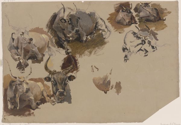 Editor: We're looking at "Charging Bull," one of a pair made of porcelain by the Derby Porcelain Manufactory, around 1745-1755. They’re full of tension and energy. I'm curious, what symbolic weight might these figures have carried for viewers at the time? Curator: Think of the bull, throughout history—the Cretan Minotaur, the Golden Calf, even Wall Street’s modern mascot. These are primal forces, virility, economic power… They trigger deep-seated cultural memories and emotions. In 18th-century England, this porcelain rendering also speaks to wealth and status – a symbol not just of the animal itself, but also the owner’s sophistication. Editor: So, it’s more than just a depiction of farm life. Curator: Precisely. The Derby Manufactory catered to an aristocratic clientele. A piece like this isn’t just decorative; it’s performative. The owner displays an understanding of classical art and mythology alongside a taste for fine craftsmanship. Note how the exaggerated musculature and the twisting poses align with Rococo aesthetics. Does that tell us anything? Editor: It makes me think about the dynamic poses that emphasized movement and emotion, rather than quiet reflection. These bulls become these tiny expressions of grand passions. Curator: Yes! These "Charging Bulls" are far from simple farm animals, and function more like potent symbols loaded with cultural significance and designed to broadcast social messages. Seeing how visual symbols evolve helps to map historical cultural memories and power. Editor: I never considered the cultural load these small figures might be carrying. Curator: Visual analysis really opens a dialogue with the past. Always look for what symbols endure—and how they change.