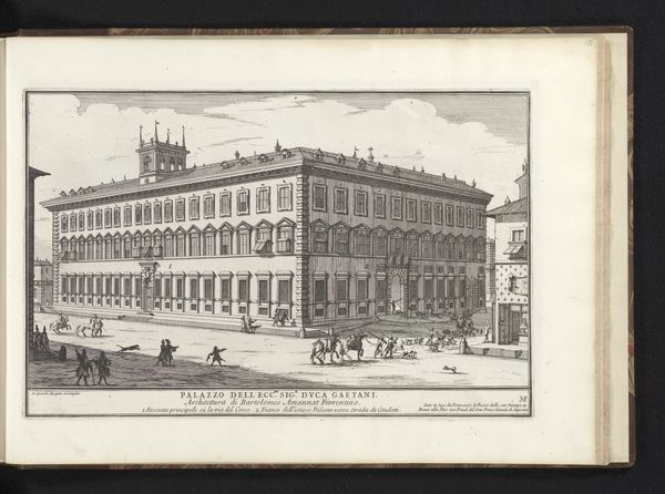 This print of the Palazzo Bonaparte in Rome was made by Alessandro Specchi, likely in the early 18th century. It is made using etching, a printmaking technique where lines are incised into a metal plate with acid, which then holds ink to be transferred to paper. The precision of etching lends itself well to architectural renderings, and you can see how Specchi used this to his advantage. The linear quality gives a great sense of the building's scale and proportion. The image gives us insight into the values of the time. Buildings like this were not just functional spaces, but showcases of wealth and power. The work involved in quarrying, transporting, and carving stone was immense, and this labor is subtly communicated through the print. Prints like this one played a crucial role in disseminating architectural ideas. They allowed for the easy circulation of designs, influencing building practices across Europe. So, by considering the materials, the making, and the context, we can appreciate the full meaning of this seemingly simple image.