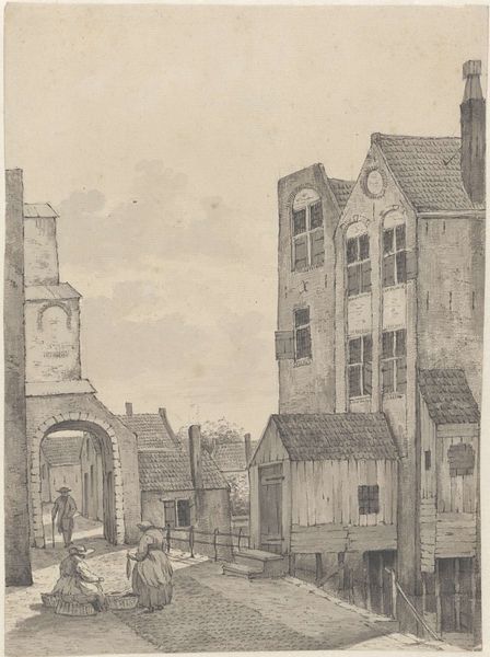 Curator: I find something deeply nostalgic in this cityscape. There’s a stillness to it, almost a reverence for the past. Editor: Indeed. This is "Groothoofd in Dordrecht," a pencil drawing completed in 1872 by Carel Frederik Bendorp. The subject is the Groothoofd, a historic landmark in the city of Dordrecht in the Netherlands, marking the meeting point of three rivers. Curator: That location must hold layers of meaning for the community, standing at such a confluence. Look at the meticulous rendering of the brickwork and roof tiles; there's a textural reality that hints at the enduring nature of these structures, even as life flows around them. What do you know about how Dordrecht figures in the cultural memory of the Netherlands? Editor: Dordrecht was historically significant, being the oldest city in Holland and playing a pivotal role in Dutch history, including the first assembly of the States General. Bendorp is capturing not just a place, but a symbol of Dutch identity and heritage during a time of rapid industrialization and social change. Curator: It’s a portrait, then, of national identity at a crucial point in time, relying on very familiar symbols. Note how the drawing emphasizes the height and solid, blocky nature of the architecture; these shapes represent resilience and continuity. I'm particularly drawn to the barely visible "ANN" sign painted onto one of the buildings...it suggests an emotional anchor for the individuals living and working there, alluding to something deeply personal, maybe even familial. Editor: Absolutely. Bendorp's artistic decisions clearly emphasize Dordrecht's importance, highlighting recognizable and enduring landmarks. Art patronage and collecting rose alongside national sentiments during this period. Representations like these fueled public awareness and cultural pride in the face of modern progress and external competition. These artworks become both documents and symbols of their eras. Curator: The subtle tonality achieved with pencil imbues the scene with an ethereal quality; time feels suspended. You're right, this cityscape is so much more than a topographical record; it whispers stories of time and cultural change, inviting viewers to ponder their own relationship to heritage and identity. Editor: A poignant encapsulation of history through architecture; Bendorp provides a glimpse into both the physicality of the landmark itself, and its vital place in the national consciousness.