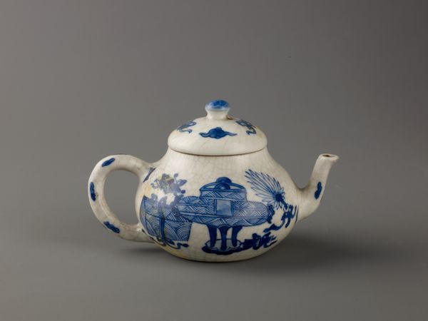 This "Teapot" was made in the Saint-Cloud factory around the early 18th century. It is made of soft-paste porcelain with enamel decoration. Notice how the teapot's shape, a rounded body with a handle and spout fashioned as stylized animal heads, gives it a playful yet refined presence. The delicate, asymmetrical floral designs painted on the white porcelain surface create a sense of movement and organic growth, softening the geometric form. This contrast challenges the rigid order of classical aesthetics, embracing asymmetry and naturalism. The polychrome palette—featuring muted greens, reds, and blues—enhances the teapot's ornate appearance, characteristic of the period's fascination with exotic motifs and luxurious materials. This visual richness invites us to consider the cultural codes embedded within the artwork, as well as the craftsmanship required to achieve such intricate decoration. Ultimately, this teapot represents a fusion of form and function, inviting ongoing aesthetic appreciation and cultural interpretation.