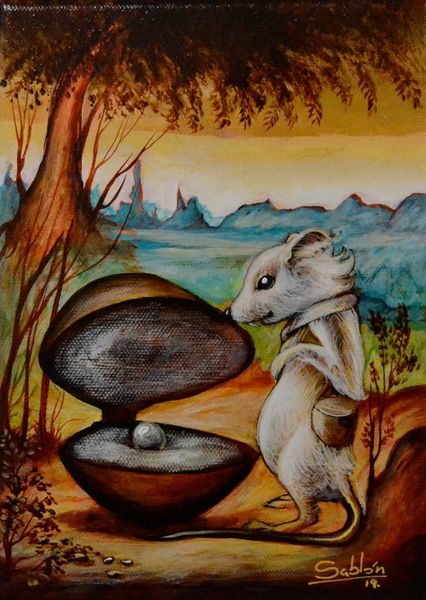 Curator: This intriguing oil painting, titled "Iron," comes to us from the imagination of Konstantin Korobov. What strikes you first? Editor: A feeling of stark isolation. The vast, icy landscape dominates everything. It suggests the precarity of human life when set against nature’s indifference. Curator: It certainly captures that. I'm immediately drawn to the geological figure dominating the right side, looking rather like a stern, watchful face carved into the cliffside. Notice the cave, a tiny portal. This rockface presents itself as a liminal point—a place of transition or a gateway into another world, possibly the subconscious. Editor: Absolutely. And consider how the figure of the man and the wolf mirror the shape and seeming gaze of that stony giant, as if both are responding to the same call or challenge inherent in this formidable land. Is it about adaptation? Survival in an unforgiving environment? Curator: Symbolically, the wolf often represents instinct, loyalty, but also a wild untamed nature that contrasts with the clothed figure of the man. They are aligned in this visual story. What might that unity suggest about their interaction? Editor: That image feels critical now, reminding me that our social and political identities are inextricably linked to our environment. The painting hints that survival necessitates embracing—or at least acknowledging—our relationship to nature. There is also that dark bird silhouetted in the sky: Is that the spirit of this hard northern place looking down on them? Curator: Perhaps it represents awareness, and a need to listen closely to a different kind of voice in that landscape. We, as viewers, have come to participate in their silent vigil. Editor: I leave with a renewed sense of both the vulnerability and tenacity of the human spirit in the face of overwhelming forces, beautifully depicted. Curator: I'm also taking away a deeper sense of connection; seeing the symbolic weight within what appears at first a bleak expanse allows us to recognize the hidden meanings.
