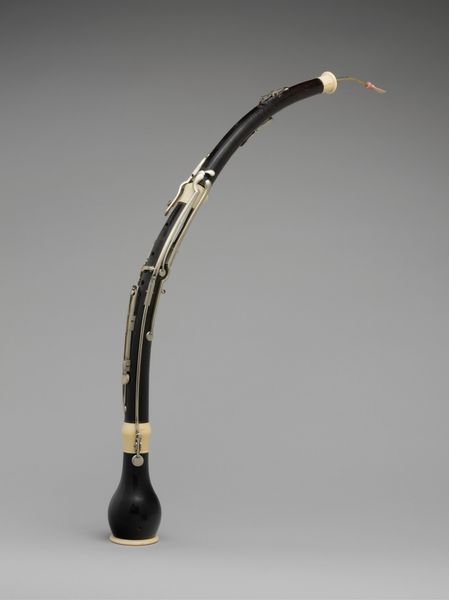 This 'Buccin' by Charles Kretzschmann captivates with its intricate form and striking combination of materials, featuring a trombone-like structure terminating in a carved animal head. The contrast between the smooth, polished brass and the rougher, painted wood immediately draws the eye. The linear structure of the trombone, with its parallel lines and cylindrical forms, is disrupted by the curvilinear shape of the horn and the expressive carving of the animal head. This juxtaposition creates a dynamic tension, challenging our expectations of both musical instruments and sculptural forms. The grotesque head, with its open mouth and bared teeth, introduces a sense of the uncanny, unsettling the harmony of the instrument's design. The careful craftsmanship and the unexpected combination of elements invite us to consider how the artist is playing with the boundaries between functionality and artistic expression. This 'Buccin' transcends its utilitarian purpose, becoming a complex object that engages with ideas of transformation, and the interplay between the beautiful and the grotesque.