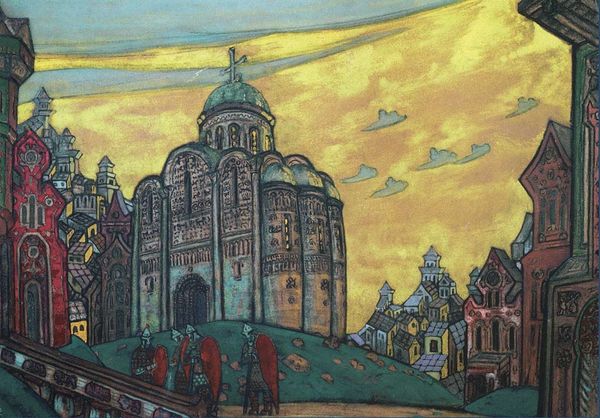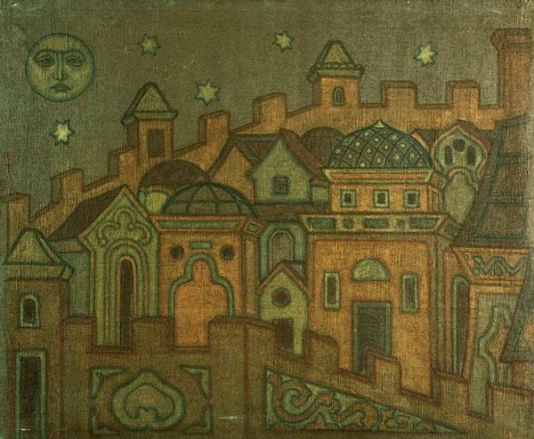 Nicholas Roerich painted Putivl. Eclipse. with tempera in an unknown year. Look at how Roerich lays down color; it’s as if each brushstroke is a conscious decision, building up to a layered effect. It makes you think about the physicality of artmaking. The city is set against a gorgeous night sky, the church and surrounding buildings are almost fairytale-like. The texture is also interesting. It's not about replicating reality, but about creating a feeling. The stars are more like specks of light, almost playful in their arrangement. The way he’s rendered the clouds gives the sky a dynamic, almost turbulent feel, yet there’s a stillness in the buildings. It’s a strange contrast, isn’t it? This reminds me of Hilma af Klint. It’s like these artists are in conversation across time, exploring the unseen through paint. This piece shows how art can be ambiguous, a space for multiple interpretations, not just one fixed meaning.