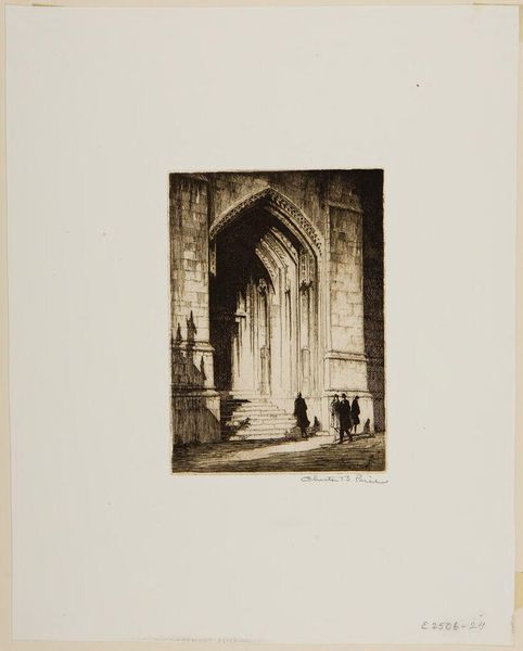Editor: This is John Henry Hill's "Ratisbon," a sepia-toned print of a cathedral scene. The detail is incredible, but it feels like a snapshot of a very specific moment. What might have been happening here, culturally or socially? Curator: Consider the rise of architectural prints in the 19th century. They served not just as records, but as tools of civic pride and cultural identity. Is Hill presenting Ratisbon as a symbol of religious authority, perhaps reflecting a debate about faith and progress? Editor: So, it's not just a pretty picture, but a statement about the role of the church in society at the time? I never thought about prints having so much to say! Curator: Exactly. Prints democratized images, making grand structures accessible. Whose narrative does this image amplify, and potentially silence? Editor: That gives me a lot to think about regarding how images can shape public perception. Thanks!