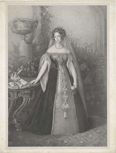 This print of Sophie van Württemberg was made by Léon Alphonse Noël, a French artist who worked in the 19th century. This portrait gives us a window into the visual culture of European royalty during that era. Sophie’s dress, jewelry, and crown function as clear markers of status. There is also a table set next to her with some objects atop of it. To understand this image, we need to consider the role of royal portraiture in creating and reinforcing social hierarchies. How does this image construct the authority and identity of its subject? We can look at how Sophie is being presented here through visual codes and cultural references that create meaning. Historians use resources such as letters, diaries, newspapers, and institutional records to understand the political and cultural context in which such images were produced and consumed.