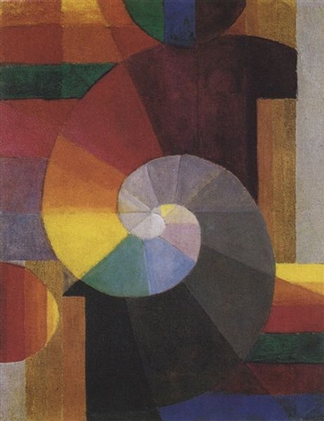 Curator: Let's discuss Frantisek Kupka’s "Disks of Newton, Study for Fugue in Two Colors," created in 1911 using oil paint. Editor: Immediately, I’m struck by the vibrant energy! The juxtaposition of these brightly colored concentric circles is quite arresting, almost like a child's toy spun at high speed. It looks almost hypnotic. Curator: Absolutely. Kupka was deeply invested in exploring color theory, drawing inspiration from figures like Newton. The "Disks of Newton" alludes to Newton's experiments with prisms and light, and we should view this in dialogue with Orphic Cubism, examining relationships to music, and even Eastern philosophy, which held enormous influence during this era. Editor: Fascinating! For me, though, there's an emphasis here on the materials themselves: the impasto of the oil paint, the ways Kupka applies and layers the colors, and how the overall process seems almost experimental. It feels less about perfect representation and more about an investigation into how color affects matter. How were pigments like these being manufactured and consumed at the time? What did it *mean* to apply such saturated colors with these relatively new oil-based techniques? Curator: A compelling point. One can contextualize it further through considering the sociopolitical ramifications of these new technologies. Developments in color production mirrored industrial progress generally, with clear connections between consumerism, class structures, and aesthetic experience at the time. Who was benefiting from these mass production opportunities, and how does the painting express both optimistic excitement and darker truths inherent in material reality? Editor: And there’s something almost rebellious in this approach! Before industrialized processes made paint tubes accessible to even hobbyists, color creation was time-consuming. To then dissolve form completely, celebrate color as its own subject...it questions labor itself, upends the established values of craft! Curator: A valuable point, reframing ideas about access, materiality, and ultimately democratizing beauty and knowledge. The layered discourse enables critical understanding beyond traditional narratives. Editor: Thinking of labor and production in painting suddenly reframes abstract art history as material history too. I am left looking deeper at color.