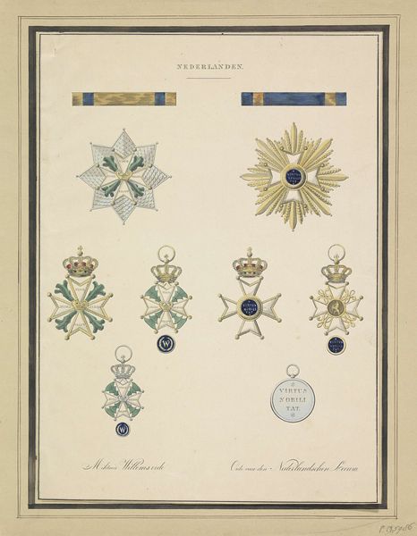 This print of Portuguese honors was made by Willem Charles Magnenat, though the date of its creation is unknown. The print depicts the visual codes of Portuguese society, these being the medals awarded for service to the country. The image's meaning lies in the history and structure of Portuguese society. These medals represent the hierarchy of power, the rewards granted by the state, and the visual reinforcement of a particular social order. We might ask, who was entitled to wear these decorations? What political or military events might have led to a proliferation of these awards at a given time? These are questions about the institutional life of Portugal. To understand the image more fully, one might delve into the archives of the Portuguese government or the records of the royal houses to see how the awards were used and valued, and who received them. In this way, the image becomes not just a pretty picture but a window into the social and political life of a nation.