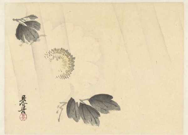 Curator: We are looking at “Plantestudie”, a work on paper by Dankvart Dreyer, probably made between 1831 and 1852, and currently held at the SMK, the National Gallery of Denmark. It is executed in pencil and exemplifies Dreyer’s interest in landscapes. Editor: This really hits a nerve with me. It feels so ephemeral, like catching a memory flitting by. The light pencil work almost vanishes into the paper, which looks like it’s patched together…a fragile record of a passing moment, maybe from a sun-drenched afternoon. Curator: The apparent fragility is noteworthy. Dreyer is employing the conventions of realism but seemingly deconstructing it via the suggestive character of the draftsmanship. One recognizes an attempt to capture botanical accuracy, but the image seems on the verge of disappearing. Editor: Disappearing! Exactly! It makes me think of childhood drawings—a direct, almost urgent attempt to capture what’s seen. The simple, sparse lines give it this unpolished, raw quality that's pretty refreshing. Almost childlike. Curator: Childlike perhaps, but meticulously constructed in its apparent simplicity. Observe the confident strokes forming the veins of the leaves, the variations in shading that hint at volume and texture, while considering that these observations are not supported by color. A complex statement achieved with extremely limited means. Editor: Limited, yes, but emotionally abundant. You know, it's funny, it makes me think about how much we overlook. A tiny plant, almost scribbled into existence. It celebrates the overlooked beauty, the quick sketch becomes precious in a strange way. Curator: Indeed, its value, paradoxically, lies in its fragmentary nature and unpretentious execution, which invite a kind of sustained observation seldom elicited by grander, more fully resolved works. Editor: You’re right, absolutely! Looking closely has revealed so much, like a tiny, intimate invitation into another's private observation. A delicate record…I’m really charmed. Curator: Its intimate immediacy provides precisely what enchants. The artist's singular moment of encounter is available to us in a deceptively simple form.
