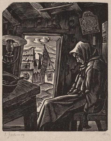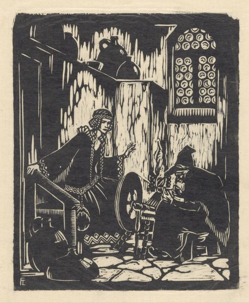 Hans Alexander Mueller created this woodcut of Don Quixote. Mueller, working in the early to mid-20th century, came of age in a period of rapid social and political change, marked by the aftermath of World War I and the rise of modernism. Mueller’s Don Quixote is depicted as a man consumed by his imagination. We find him here surrounded by books, his gaze fixed on a distant castle which seems to arise from the pages he reads. This image captures the essence of Cervantes’ character who blurred the line between reality and fantasy. We can consider how this blurring is also a theme in the artist's life. Mueller came to the US as a refugee from Nazi Germany, becoming an influential educator. Through this piece, we are reminded of the power of stories to shape our perceptions and to offer solace in times of uncertainty. What does it mean to escape into a world of fantasy, and what does it mean when that fantasy collides with reality?