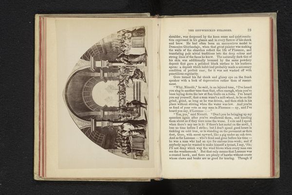 Curator: This gelatin-silver print presents a reproduction of a fresco by the Early Renaissance master, Fra Angelico. It’s titled "Fotoreproductie van een fresco van de Kruisiging door Beato Angelico in de San Marco, Florence", and was made sometime before 1863 by Giacomo Brogi. Editor: My immediate response is one of coolness. The limited grayscale palette lends an air of historical distance and somber contemplation that feels remarkably stark, like an x-ray of a bygone devotional practice. Curator: Indeed. The photographic process itself brings the early Renaissance into dialogue with mid-19th century technology. Looking at the construction of this print, we see a new system for wider consumption of iconic imagery using new materials to make the circulation much easier. It allows us to consider art accessibility. Here a spiritual image shifts from unique artwork to commodity for an expanding market. Editor: It's a fascinating interplay. The original fresco, conceived within the walls of a Florentine monastery, was itself designed to facilitate contemplation within that sacred space. Its photographic reproduction, however, effectively democratizes it, severing its ties to the architectural setting and the act of ritualized devotion, presenting it as an object of consumption within a book. Curator: Absolutely, the material properties are key to the function. We move from pigment on plastered walls designed to fix us, the monks, within an ascetic order to mass produced prints available in shops. The narrative scene, the crucifixion itself, normally the pinnacle of suffering and sacrifice, in this state prompts us to meditate on access and circulation rather than, necessarily, religious beliefs. It challenges the conventional high/low art divide. The means of photographic production affect the reception of devotional images, inviting modern viewership into early Renaissance spirituality and making us reconsider what “art” actually is, outside hallowed settings. Editor: This copy’s context makes you ponder who consumed such reproductions, what other images might they have been packaged with, and how Brogi and others influenced art dissemination—it moves the center from the original artist, Fra Angelico. I come away thinking about the act of artistic consumption itself as a kind of cultural and, in its own way, devotional practice. Curator: For me it underlines the complex relationships between spiritual practice and modes of production and, critically, it forces us to face who had and did not have access to images then, and who has access now.