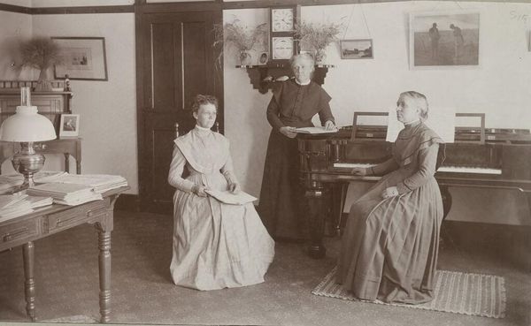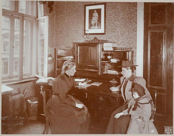 Editor: This photograph, taken by the Byron Company, is titled "Charity, Organizations: United States. New York. New York City. National Plant, Flower and Fruit Guild: National Plant, Flower, and Fruit Guild: Gifts of Potted Plants to Women Applicants." The scene feels very staged. What do you see in this image? Curator: It's interesting to consider the labor and the material conditions that enable this seemingly benevolent act. Who cultivated these plants? Who made the pots? And how does this charitable act function within the larger economic systems of the time? Editor: That's fascinating; I never considered the labor behind the plants themselves. Curator: It exposes the complex web of production and consumption inherent in acts of charity. It certainly gives a new perspective to the image.