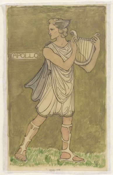 Richard Nicolaüs Roland Holst made this costume design for Boschnymph with what looks like watercolour, or perhaps gouache. The nymph's garments, the green shawl and grey dress, are outlined with such care, and filled in with flat washes. It makes me think about the way abstract painters like to work, carefully laying down the parameters of an area and then filling it in. There’s such a mix of styles here: Holst uses both thin, transparent washes of colour to describe the sky and grass, as well as opaque blocks of colour, like in the dark ground. The grass is just amazing, look at the variety of marks he makes, tiny dashes of green, some blended, some standing alone. It reminds me of Van Gogh's paintings of fields. Ultimately, what this work conveys, is the endless conversation that art represents, artists borrowing, adapting and responding to those that came before, in an endless cycle of reinterpretation.