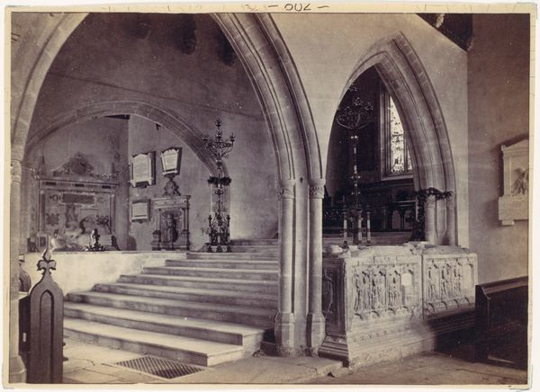 Albert Greiner captured with photography the ‘Decoratie in de Nieuwe Kerk bij de ontvangst van Willem III en Emma in Amsterdam’. The photograph presents a grand interior, dominated by vertical lines of massive columns that rise to meet arched ceilings. Garlands, draped between the columns, add a festive yet orderly rhythm to the space. This composition invites a semiotic reading; the architectural structure signifies established power, while the decorations signal a specific event of welcome. The perspective draws the eye to the vanishing point, where symbolic objects of royalty and religion converge, reinforcing traditional hierarchies. The photograph functions as a historical document and a study in spatial representation. Its structured composition mirrors the order and values of the society it depicts, yet the very act of capturing it through a new medium hints at evolving cultural dynamics. The interplay of light and shadow enriches the texture, drawing us into a space where ceremony and the everyday intersect.