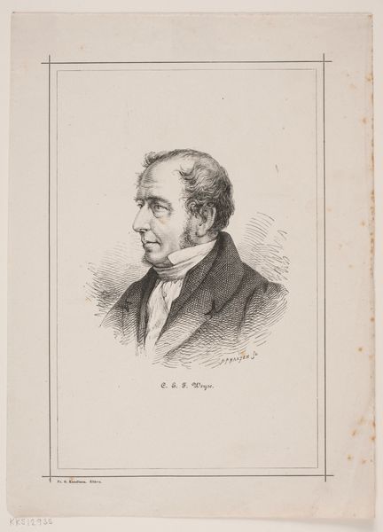 Carl Mayer captured this portrait of Felix Mendelssohn Bartholdy through lithography. Observe how the profile view of the composer’s face becomes a symbol of Romantic introspection, akin to classical busts but charged with the era’s emotional intensity. The carefully styled hair and the rigid collar, while hallmarks of 19th-century bourgeois respectability, carry echoes of ancient Roman portraiture, where such precise detailing conveyed status and intellect. His silhouette, a study in controlled passion, reminds us of the Renaissance profiles that sought to capture the essence of a person's character through the precision of line. This intentional presentation taps into our collective memory, stirring subconscious associations of artistic genius. It reveals the cyclical return and adaptation of historical motifs, each iteration laden with the cultural anxieties and aspirations of its time.