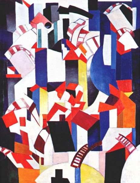 Sonia Delaunay created this painting, "The Ball," to explore abstraction through color and form. Delaunay, a Ukrainian-born French artist, moved through a male-dominated art world with an individual approach, working across painting, textile design, and set design. Delaunay’s "The Ball," exemplifies her unique style of simultanism, or the use of contrasting colors to create a sense of movement and energy. The painting pulses with vibrant hues, abstract figures, and geometric shapes. Delaunay's work can be seen as a celebration of modernity and the dynamism of urban life, reflecting the rapid social and technological changes of the early 20th century. The painting invites us into a festive space, where the boundaries between the figures and their surroundings dissolve. Delaunay aimed to capture the sensory experience of a social gathering. Her work rejects traditional representation in favor of capturing the subjective and emotional impact of an event. With its joyful colors and energetic composition, "The Ball" encapsulates a moment of collective exuberance.