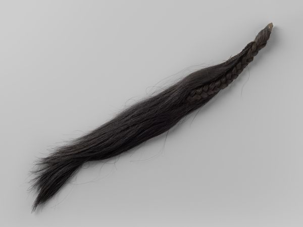 Editor: Here we have a photograph titled "Pluim bij een tsjapka van eerste of tweede regiment lansiers, M. 1841," dating from around 1841 to 1849 by an anonymous artist. It depicts a blonde plume. It’s strikingly… intimate. Almost like a portrait of someone’s hair. How do you interpret this work, especially given its historical context? Curator: What strikes me is how this object, seemingly insignificant on its own, speaks volumes about the power dynamics of 19th-century militarism and its connection to individual identity. This plume, adorning the tsjapka, or military cap, was part of a uniform, signaling belonging and allegiance. Who was compelled to wear this, and what did it mean to them, knowing the violent function of the regiments that adopted it? Editor: So, it's less about the aesthetic of the object itself, and more about what it represents within the social fabric of the time? Curator: Precisely. Consider the visual language – the rigid structure of the regiment, contrasted with the delicate strands of the plume. Is there tension there? How might that tension reflect the lived experience of those soldiers – perhaps torn between duty and their own individuality? Where does luxury meet brutality in 19th-century military culture? Editor: That reframes my entire understanding of it. I initially saw just a photograph of a plume. I see that the seemingly simple image can unlock conversations about conformity, individuality, and the realities of warfare. Curator: Absolutely. Art has this power. And now consider what meanings it can yield for us today! Editor: Thanks, that’s incredibly insightful, thank you!