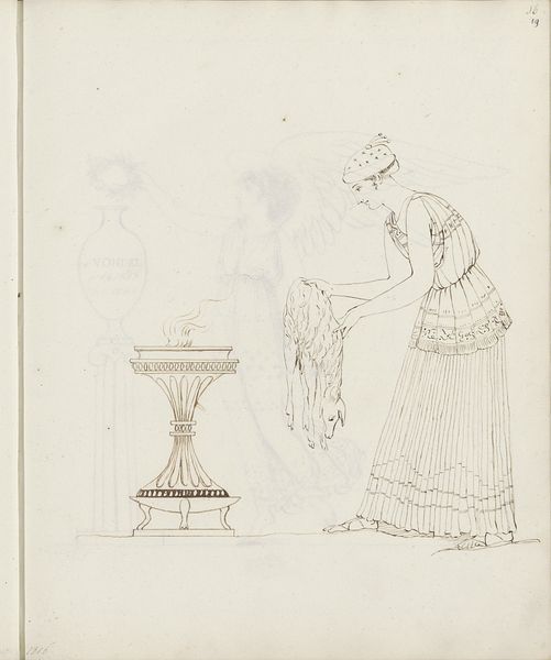 Catharina Kemper made this drawing, "Vrouw die een schapenvel offert, naar klassiek voorbeeld" – or "Woman Sacrificing a Sheepskin, after a Classical Example" – with pen in brown ink. The artist here has looked back to classical antiquity for her subject, which was a common practice in late 18th and early 19th century Europe. It is important to remember that ancient Greece and Rome were themselves powerful, expansionist empires, built on slavery and warfare. By invoking these civilizations, Kemper’s drawing, whether consciously or unconsciously, touches on contemporary themes of power, conquest, and social hierarchy. We might ask ourselves, what does it mean to look back to a past that is itself fraught with injustice and violence? How does such a drawing reinforce or critique the power structures of its own time? To answer these questions we can consult a number of sources, from the artist's personal writings to historical studies of Dutch art and society. By situating Kemper’s drawing in its historical context, we can begin to understand its complex relationship to both the past and the present.