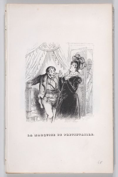 Curator: Let’s turn our attention to J. J. Grandville’s 1836 print, “The Two Sisters of Charity,” part of The Complete Works of Béranger and housed here at the Met. What strikes you initially? Editor: There’s a softness, despite it being a print. A dreamlike quality almost, particularly around the figures’ edges where the lines dissolve. The composition is dense, very top-heavy, with a strange lightness rising from the lower register. Curator: I find it intriguing how Grandville employs a classical pyramidal composition, typically seen in Renaissance paintings. He organizes his figures with precision; a nun in dark garb on the left, juxtaposed with a radiant woman on the right and an elder. This structured balance amplifies the contrast and theme. Editor: Thinking about the actual making of this image: lithography, with its reliance on the flat stone and greasy crayon, makes me consider the printmaker’s process. How did they approach transferring Grandville's initial concept? There's skill and labour embedded. Curator: Absolutely. Technically, Grandville has utilized the cross-hatching to describe form, but consider, too, the ideological layering. The starkness of the nun is strategically positioned against the ornateness of the other sister. This contrast guides the viewer's eye, creating a subtle hierarchy of symbolic form. Editor: Yet, this print was also made for consumption. Placed within a book meant for wide circulation, this means multiple hands are part of its existence – binders, distributors, and buyers. It emphasizes the art’s role as a commodity, spreading ideas, while its materials contribute to the cultural fabric. Curator: True, the image is didactic, of course, encouraging an attitude. What do you see in it beyond those immediate signs, the wimple or garland, that communicate the artist’s theme so immediately? Editor: Well, despite Grandville's clear symbolic intent, seeing this image now, I consider how the consumption of such materials impacts social norms and cultural expectations. Does art always have to be "beautiful" to be impactful, and who gets to decide what's worthy and charitable? Curator: Excellent point. Analyzing this artwork has prompted considerations on its aesthetic and ideological intent, and it now prompts reflection on contemporary value systems. Editor: Yes, delving into the materiality and processes behind its making allows for consideration of both artistic vision and societal impact, connecting past artistry to present dialogues.