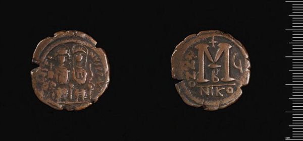 Editor: Here we have a gold coin of Herakleios, made by Abd-al-Malik of the Umayyads. It looks like there is a portrait on one side and a cross on the other. What can you tell me about its history? Curator: It's fascinating how coins become sites of cultural negotiation. The Umayyads initially imitated Byzantine coinage, but gradually asserted their own identity. Do you notice the similarities in imagery and script on this coin, and can you see the differences? Editor: I see both a cross and Arabic script. It seems like the coin is deliberately referencing and then subverting existing power structures. Curator: Precisely. This coin isn't just currency; it's a statement about power, identity, and cultural transformation in a changing world. Editor: I never thought about coins as carrying so much political weight. Curator: Examining the socio-political context transforms our understanding of this artifact.