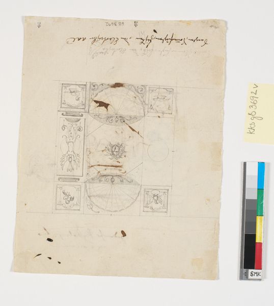 Curator: Let's wander into this intriguing piece: “Halbfigur nach links, ungedeutete Skizze sowie Notizen,” attributed to Pieter Coecke van Aelst, rendered in ink and chalk. I am instantly captivated by its fragmentary nature—a peek into the artist’s mind, a workshop of ideas, wouldn't you agree? Editor: It does feel like a page ripped straight from the artist's sketchbook. I’m especially curious about those indecipherable notes surrounding the sketches. How do you approach a work that feels so… incomplete, yet so intimate? Curator: Ah, a splendid question. Imagine finding a diary. Not a polished manuscript intended for the world, but raw, unfiltered thoughts scribbled across the page. This drawing—if we can even call it that—invites us to co-create meaning. The fragmented face emerging from the sketch, what does it whisper to you? What stories does it hold? Are you intrigued? I certainly am! Editor: Well, there’s a vulnerability in the sketchiness, like we’re seeing the artist wrestle with capturing the essence of the figure. The writing…it's a total mystery. It makes me wonder, were these just reminders, calculations, or perhaps…personal reflections alongside his artistic process? Curator: Perhaps! These fleeting impressions, these scribbled ideas...it speaks volumes about how artists wrestled with concepts. This piece asks you to abandon fixed notions, let go of concrete answers, and simply revel in the journey of artistic exploration. What a delight! Don’t you think? Editor: Definitely! It makes me appreciate that art isn’t just about the finished product, but about the entire messy, beautiful process. Thank you, that gives me a lot to consider. Curator: My pleasure. Perhaps our viewers are similarly inspired. Let’s move along and see what other treasures await, shall we?