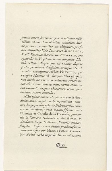 Editor: So, this is an engraving from 1760 by Giuseppe Maganza, titled "Prodigio dis. Pasquale." It looks like an announcement or maybe even a news report, printed with very elaborate typography. The whole piece feels very dramatic, almost theatrical, in its presentation. What strikes you when you look at it? Curator: Well, immediately, the handwritten font jumps out. It’s attempting to emulate, and thus invoke, the power of the original miraculous text. This wasn’t just about conveying information; it was about authenticity. Think about the layers of meaning embedded in the very form of the lettering. How does it feel different from, say, a clean, modern typeface? Editor: I see what you mean. It feels more…personal, almost like a direct connection to the events described. Is it typical to see this style used in news reporting? Curator: In the 18th century, absolutely. The "news" wasn't as detached as it aims to be today. There's a deliberate attempt here to convince, persuade, even to inspire awe. This choice evokes the sacred nature of what it reports. Note the language used, too. "Prodigio" – prodigy, or miracle. How does this contrast with a headline you might read today? Editor: Today’s headlines would probably focus on the "who, what, when, where" of the story. This feels much more…interpretive, emphasizing the miraculous aspects. It almost sounds like a sermon more than a news report! Curator: Exactly! The handwritten style reinforces this idea of divine authorship and personal witnessing. These aren’t just events; they are signs, imbued with a significance beyond the everyday. It brings a sense of cultural memory with it, that has spanned the centuries. The typography thus operates as a relic, carrying both information and an emotional weight. It gives cultural and psychological context. What do you take away from it all? Editor: I understand now how the handwritten style, font type, and wording connect, creating the intended emotive, dramatic effect to promote the ‘miracle’. Curator: Indeed. Visual language shapes meaning far beyond just the literal words.