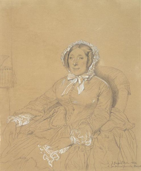 Editor: Here we have John Linnell’s sketch, “Mrs Phillips, Wife of the China Man, Oxford Street,” from the Tate Collections. It's delicate, but she seems a bit severe. What strikes you about this portrait? Curator: The image holds a certain societal weight. Consider the title: she's defined by her husband's ethnicity and profession. Do you think Linnell captured a sense of her self-perception, shaped by these societal labels? Or perhaps her resilience against them? Editor: That's fascinating! I hadn't considered how much the title influences my reading of her expression. I see that now. Curator: It also speaks to the era's fascination with the "exotic" and how individuals were often perceived through that lens. It's a layered portrait, revealing more than just a likeness.