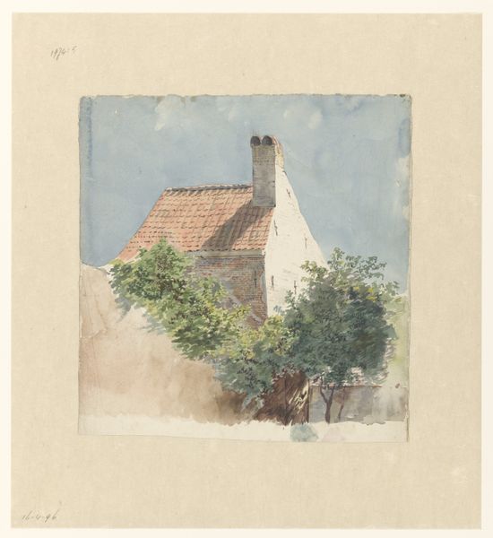 This watercolour, "Gässchen mit Rückseite einer Mühle," was created by Philipp Rumpf. At first glance, the composition is defined by a narrow alleyway, anchored by the stark verticality of a mill's water wheel on the left and contrasted by the cylindrical tower at the alley's end. Rumpf's delicate use of colour creates a muted atmosphere, where the buildings’ stone textures and vegetation blend almost imperceptibly. Here, we can see the artist is deeply engaged with the pictorial structure itself. The use of light and shadow isn't just descriptive, it creates a spatial depth inviting the viewer into the scene. The water acts as a mirroring plane, subtly unsettling our perception of depth, and questioning the stability of the perspectival space. The structural elements, such as the buildings and the water wheel, are depicted with a soft focus. This creates an interplay between clarity and ambiguity, typical of Rumpf's style, which destabilizes our understanding of the depicted scene.