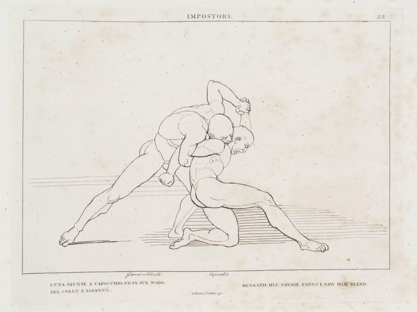 Daniël Veelwaard created this print, "Lichamelijke oefeningen; worstelen A," which translates to "Physical exercises; wrestling A," sometime in the late 18th or early 19th century. It shows two men engaged in a wrestling match, rendered in a precise, illustrative style. Now, while seemingly straightforward, this image offers insights into the social and cultural values of its time. The emphasis on physical exercise, particularly wrestling, reflects the growing importance of physical education and the cultivation of a strong, disciplined body. This was a period marked by Enlightenment ideals and a focus on self-improvement and the development of civic virtues. To fully appreciate this print, we might explore conduct books and educational treatises from the period. These sources can reveal the social norms and expectations surrounding physical activity and its role in shaping character and citizenship. By considering such contextual factors, we can gain a richer understanding of the cultural significance of Veelwaard's image.