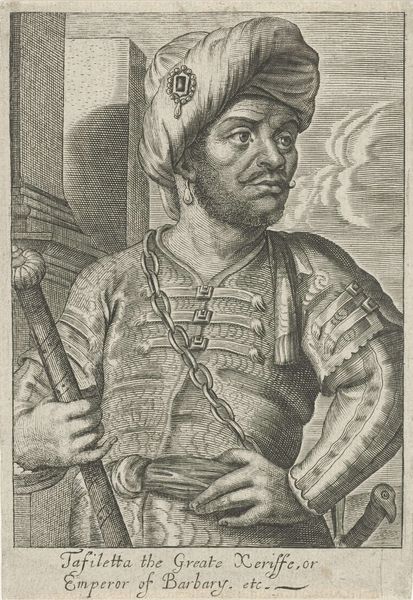 Curator: Let's delve into this graphite drawing titled "Leszek the Black," a portrait by Jan Matejko. What strikes you first? Editor: The detail, undoubtedly! Despite the monochrome palette, there is an undeniable intensity. The figure, presumably Leszek, seems both regal and weary. His crown is ornate, and the chainmail is meticulously rendered, yet his gaze seems… heavy. Curator: Heavy is an interesting word choice. Matejko, famed for his history paintings, often imbued his subjects with complex emotions, reflecting Poland's tumultuous past and national identity formation through art. Editor: Indeed. Seeing Leszek bearing this armor and the symbolic shield depicting the Polish eagle… he seems burdened by the responsibility and expectations placed on him. His race is also something to think about here. Is this simply how the artist thought he would look, or is there more going on in how race and royalty play here? Curator: Matejko completed several such drawings. It is important to realize his work contributed to the shaping of national narratives. His portrayals, however historically grounded, were designed to evoke patriotism and reflect his socio-political visions of the Polish people. This might explain Leszek's particularly stern and determined look here. Editor: Stern but maybe also tired? The drawing offers a striking juxtaposition. This man, draped in symbols of power, looks exhausted by their weight. Are we celebrating or lamenting leadership here? The use of graphite adds a kind of rawness to this portrait; its sketch-like quality reveals rather than obscures. Curator: His decision to use drawing as a primary medium makes the final images much more politically raw because it removes any grandeur of painting which may make the images even more patriotic to the people viewing it. Editor: Definitely. Seeing it now, knowing its cultural weight within Matejko's body of work, invites conversation on the power and constraints leaders navigate even today. Curator: It certainly does. It’s a potent reminder that history, like art, is never neutral but a constantly shifting reflection of ourselves and our society.