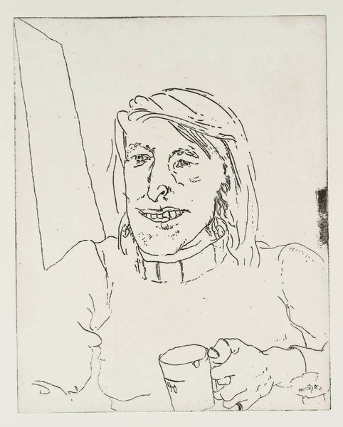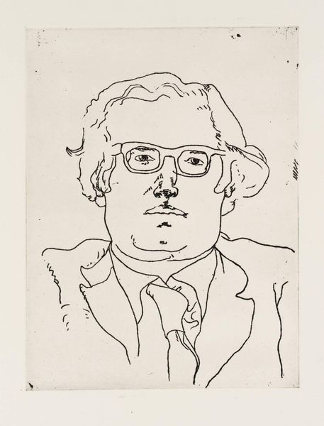 Editor: So, here we have Barry Flanagan's line drawing of "Alan Sekers." It feels incredibly intimate, like a quick sketch capturing a fleeting moment. What's your take? Curator: Intimate is spot on! I love how Flanagan uses a simple line to suggest so much – the curve of the glasses, the quirk of the mouth. There's a vulnerability here. What do you make of his gaze? Editor: Hmm, it's like he's caught off guard, a little uncertain. It almost makes him seem more human. Curator: Exactly! It reminds me that even seemingly simple lines can hold so much emotional weight. A reminder that art is as much about feeling as it is about seeing. Editor: I see what you mean! It's funny how a drawing that looks so straightforward can be so complex. Curator: Isn’t it marvelous? Flanagan invites us to look beyond the surface.