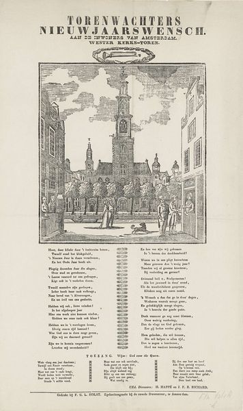 This is a New Year’s greeting from the tower guards of the Zuiderkerk in Amsterdam, dating from the mid-1840s. It is a printed broadside made using engraving, a process where lines are incised into a metal plate, which is then inked and pressed onto paper. Engraving was a key technology in the rise of mass media. Though labor-intensive, it allowed for the relatively easy reproduction of images and texts. Here, we see a depiction of the Zuiderkerk, surrounded by Amsterdam citizens, along with a printed poem offering New Year’s wishes. Consider the social context: the tower guards, public servants, are using print to connect with the populace. The act of distributing this broadside blurs the line between official duty and personal expression, suggesting a society where even municipal workers participated in the burgeoning print culture. It reminds us that art and craft are always embedded in social relationships, reflecting the dynamics of labor, class, and communication.