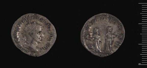 Curator: Here we have a Denarius of Severus Alexander, part of the Harvard Art Museums collection. What's your initial impression? Editor: The composition is fascinating; two sides of power and symbolism compressed onto a single, small object. It feels weighty despite its size. Curator: Indeed. Its 2.79 grams represented significant economic power and social control. Consider the labor involved in mining, refining, and striking these coins. Editor: And the artistry! Look at the detail in the emperor's profile, the incised lettering... it's an exquisite example of miniature relief. Curator: The coin also acted as propaganda, circulating images of imperial power, impacting the daily lives of the Roman population by controlling trade and reinforcing social hierarchies. Editor: True, but the focus on form still delivers beauty, even now. Examining this object through semiotics illuminates power, wealth, and authority. Curator: Absolutely. The materials themselves speak volumes about Roman economic and political strategies. I see now the complex social systems. Editor: A coin offers a glimpse into form and content, I’d say.
