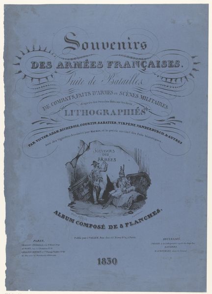 Curator: Before us we have “Omslag voor twaalf prenten met allerlei soorten voertuigen,” or, "Cover for twelve prints with all kinds of vehicles," made around 1828 by Victor Adam. It’s currently held in the Rijksmuseum collection. Editor: It’s a strikingly organized page; a variety of etched, engraved, and lithographed elements – fonts and the cityscape itself – contained by beautiful, almost decorative linework. A study in contrasts. Curator: Exactly. Adam’s piece, seemingly simple, unveils much about the period's socio-economic fabric. This isn’t just a depiction of vehicles, but an insight into transportation hierarchies and its burgeoning industrialization. The range of conveyances likely highlights emerging class divisions, who can afford what, which directly links to power. Editor: That’s an interesting consideration, but I see more than just class signifiers at play. Look at the compositional balance – the weight given to the architecture, the sky. The formal qualities of these lines suggests that even these vehicles represent freedom, a shift in social perception aided, of course, by Romanticism. Curator: True, Romanticism’s pull toward individuality shouldn’t be discounted. Yet, how can we overlook the historical reality? Road travel and transport, though enabling freedom for some, further entrenched power imbalances and opened possibilities for economic expansion for a few. Editor: I see your point about economic imbalance, but even the lettering demonstrates a balance of serif and sans-serif, bold and slender, reflecting how the artist has considered contrasting shapes and tones. It suggests this artwork represents the dawn of a new kind of freedom in mark-making, and visual construction more broadly. Curator: Certainly, it opens up interpretations. But what feels truly exciting is how seemingly neutral pieces like these open dialogues, making us rethink the very structures that supported Romantic notions of freedom. Editor: Precisely. It’s in this very tension—between formalism and historical context—that we grasp a work's multifaceted nature. The vehicles invite us to journey, not only across landscapes, but through layers of artistic, social, and historical interpretation.